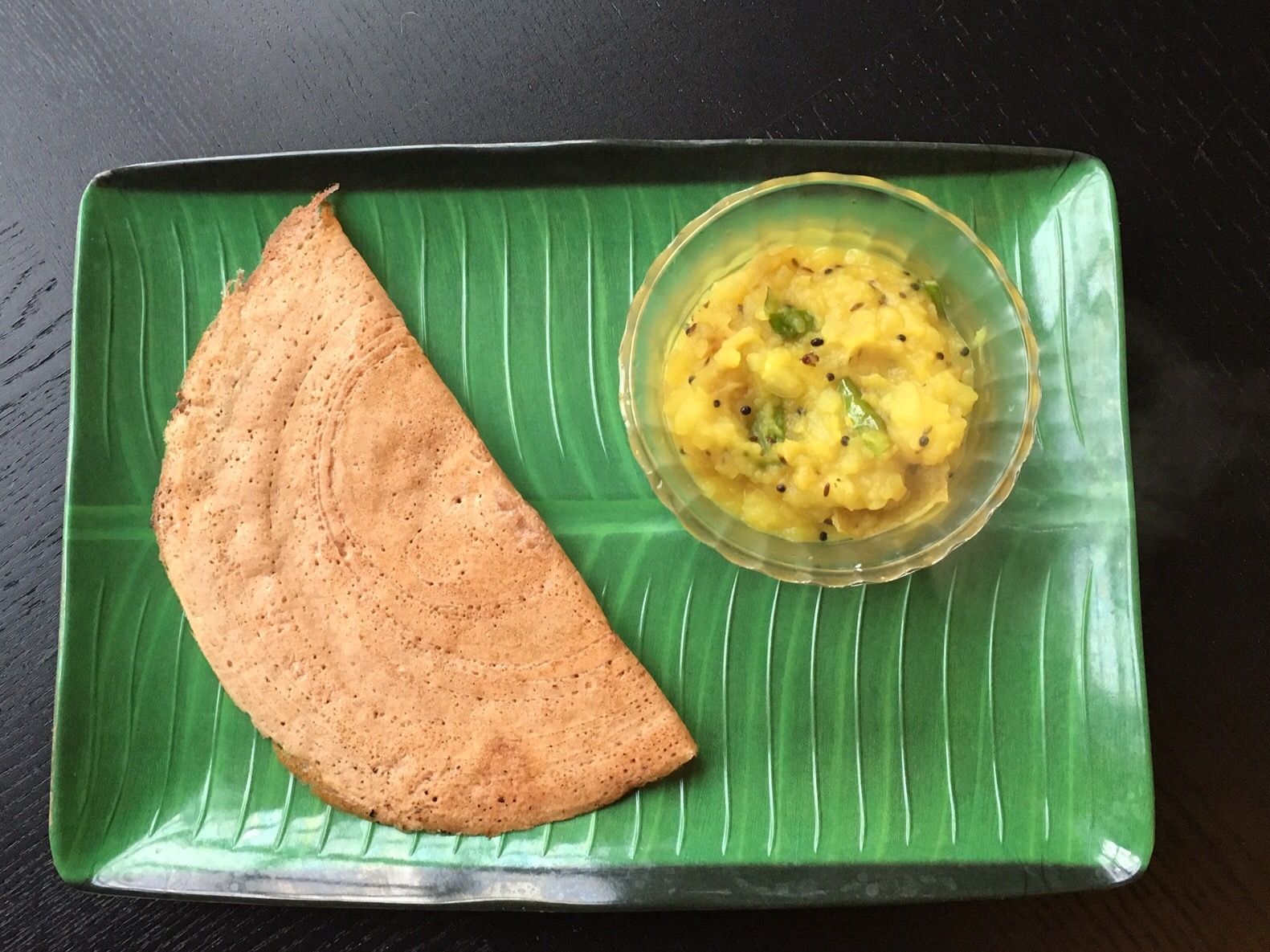 Now make dosas and eat with your favourite side dish. As you can see I served with potato curry and it was a lovely combination. After all, masala dosas are just perfect for anytime of the day!