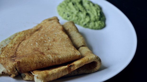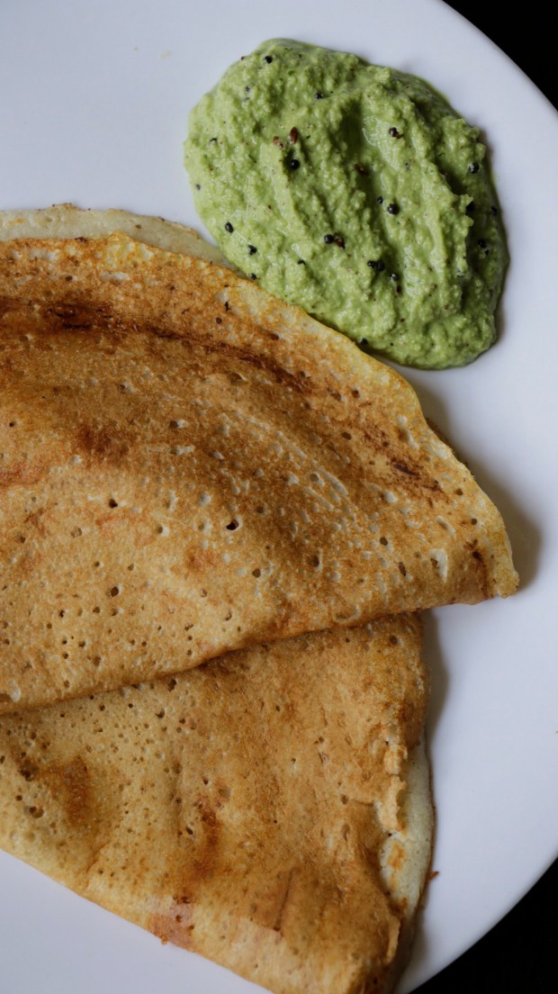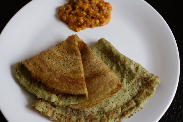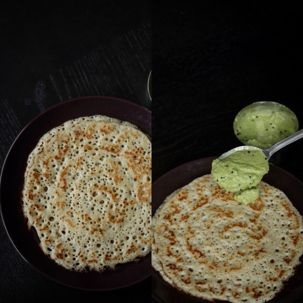 This dosa is also known as pesarettu although pesarettu is a little more prettier looking than my version.