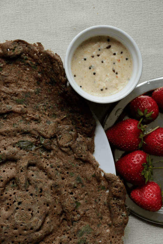 3. Ragi red Rice dosa with Moringa/Drumstick Leaves