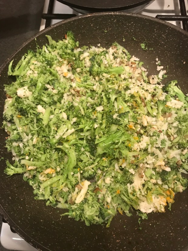 Then add grated broccoli and cauliflower.